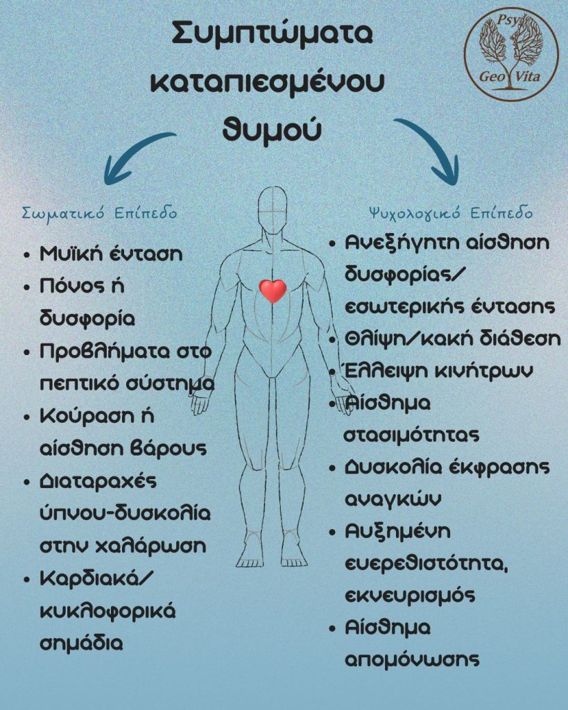 Είναι σημαντικό να σημειωθεί ότι η καταπίεση του θυμού δεν οδηγεί στην εξαφάνισή του. Η ενέργειά του απλώς αλλάζει κατεύθυνση. Αντί να εξωτερικευτεί —εκεί όπου θα μπορούσε να στηρίξει τη διεκδίκηση, τη διατύπωση ορίων ή την αλλαγή—στρέφεται προς τα μέσα. Αυτό συχνά εκδηλώνεται ως έντονη σωματική πίεση, όπως χρόνια μυϊκή ένταση, δυσκολία στην αναπνοή, στομαχικές ενοχλήσεις, κεφαλαλγίες ή μια μόνιμη αίσθηση εσωτερικής υπερδιέγερσης.